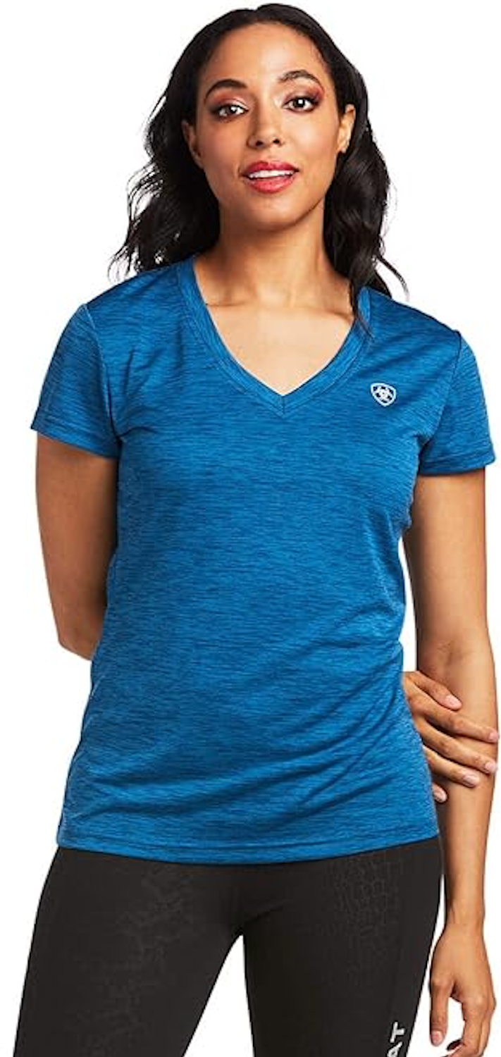 Outdoor active? Meet your perfect shirt. Our V-neck top has features to keep you cool and comfortable, including moisture-wicking abilities and sun protection.